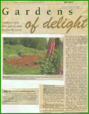 The Seattle Green Gardening Program is a collaborative effort of Seattle Tilth, Washington Toxics Coalition and WSU/King County Cooperative Extension. It's sponsored by the Seattle Solid Waste Utility, the Renton Solid Waste Utility (for 1995) and funded by the Local Hazardous Waste Management Plan.